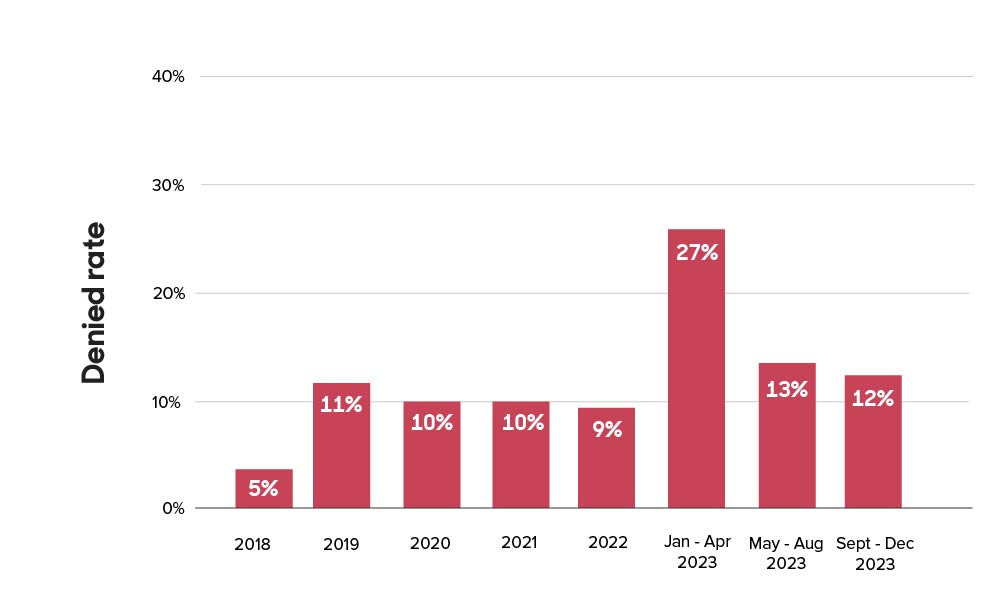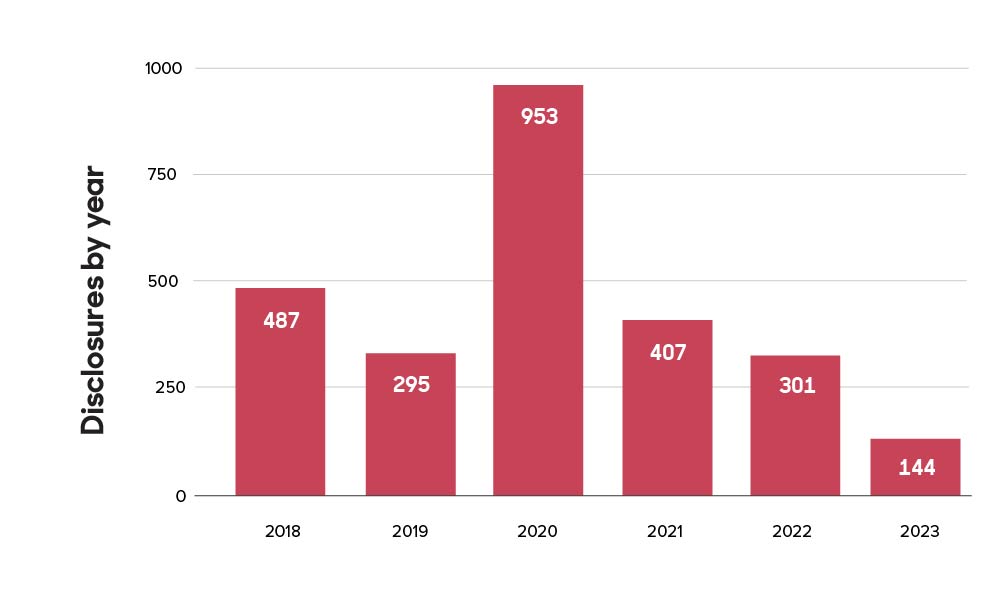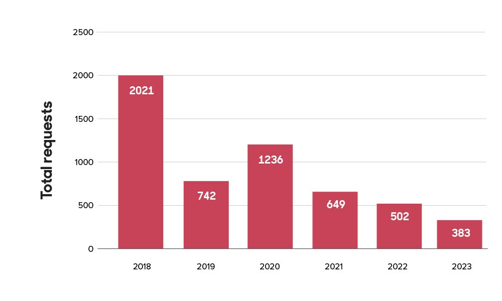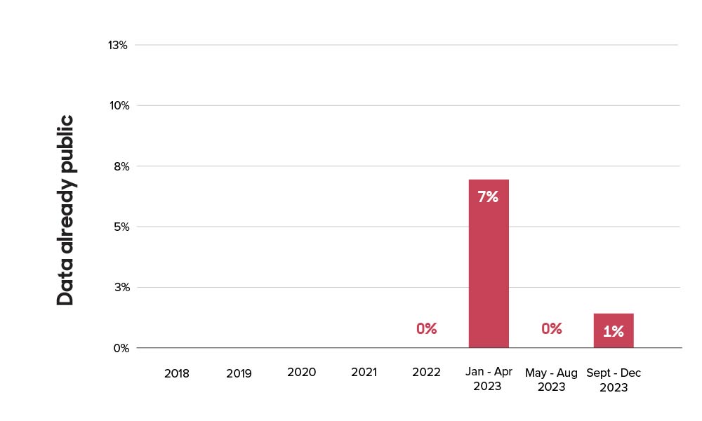We received 129 data disclosure requests in the new reporting period (September – December 2023), bringing our total since May 2018 to 5538. Below you’ll find the outcome of these requests and how that has changed over time, starting with our new period.